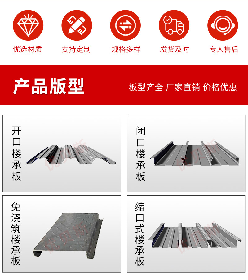采用鍍鋅鋼板經(jīng)輥壓冷彎制作成型,施工鋪設(shè)后適于澆筑混凝土,與混凝土共同作用聯(lián)合形成一個樓面整體,是建筑鋼結(jié)構(gòu)工程中僅次于梁柱的主體部分,用于樓蓋的**性支撐模板。